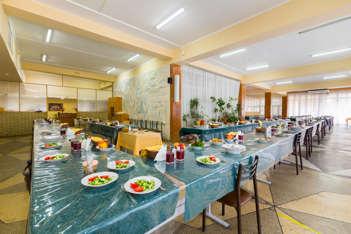 Два спальных корпуса, один лечебный и столовая соединены теплыми переходами. Для людей с ограниченными возможностями созданы условия доступной среды. На территории имеется бювет с минеральной водой "Славяновская" и "Ессентуки 2".